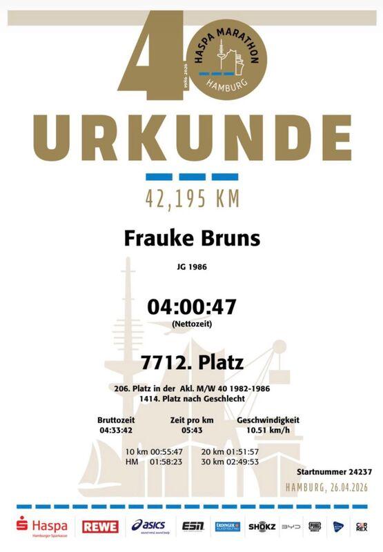 đ Frauke Bruns â mit groĂem Einsatz die 42,195 km gemeistert â einfach mega! đââïžâš