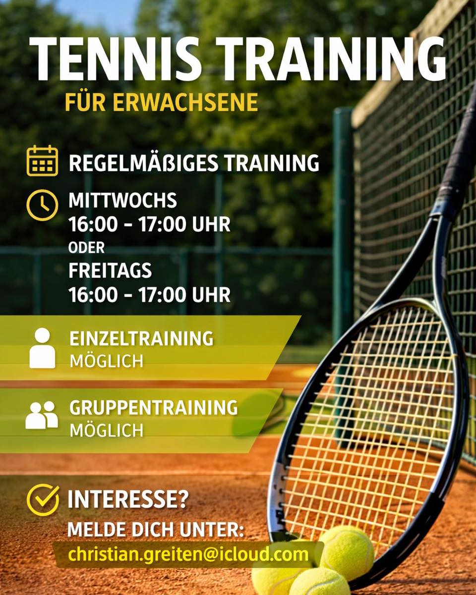 🎾 Du hast Lust auf regelmäßiges Tennistraining? Pünktlich zur Saisoneröffnung der Tennisabteilung stehen zwei regelmäßige Trainingszeiten zur Verfügung. Dieses Angebot richtet sich speziell an erwachsene Einsteiger, Wiedereinsteiger oder erfahrene Tennisspieler.