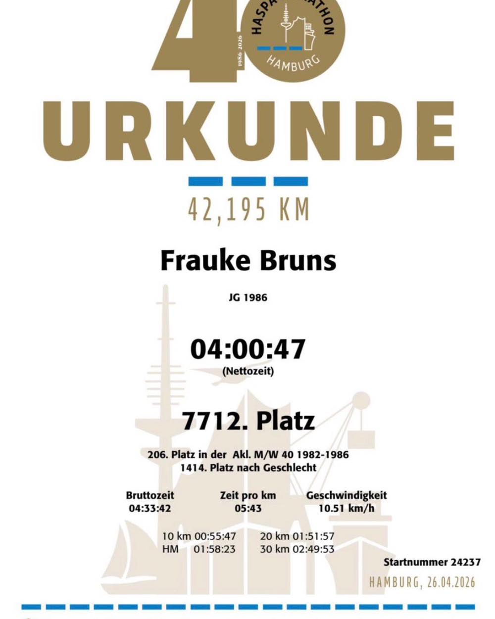 👏 Frauke Bruns – mit großem Einsatz die 42,195 km gemeistert – einfach mega! 🏃♀️✨
